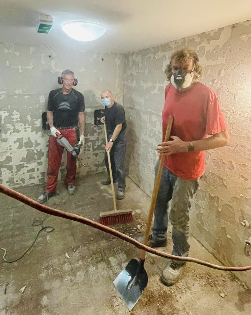 Auch aus der Geschäftsstelle und im Namen der Mitglieder sprechen wir großen Dank aus: vor Allem unserem fleißigen Hausmeister Herbert Fischer, der nicht müde wurde und zu jeder Uhrzeit parat stand. Ebenso unseren Vorstandsmitgliedern Raimund, Jochen und Rudi für ihren vollen Körpereinsatz, Mario, unserem Allrounder, der nicht nur Studio kann, sondern auch beim Abriss Muskelarbeit verrichtete. Ebenso Dieter Schmidt, unserem Studiomitglied, dem selbst der dickste Abbruchhammer zu klein war ?
